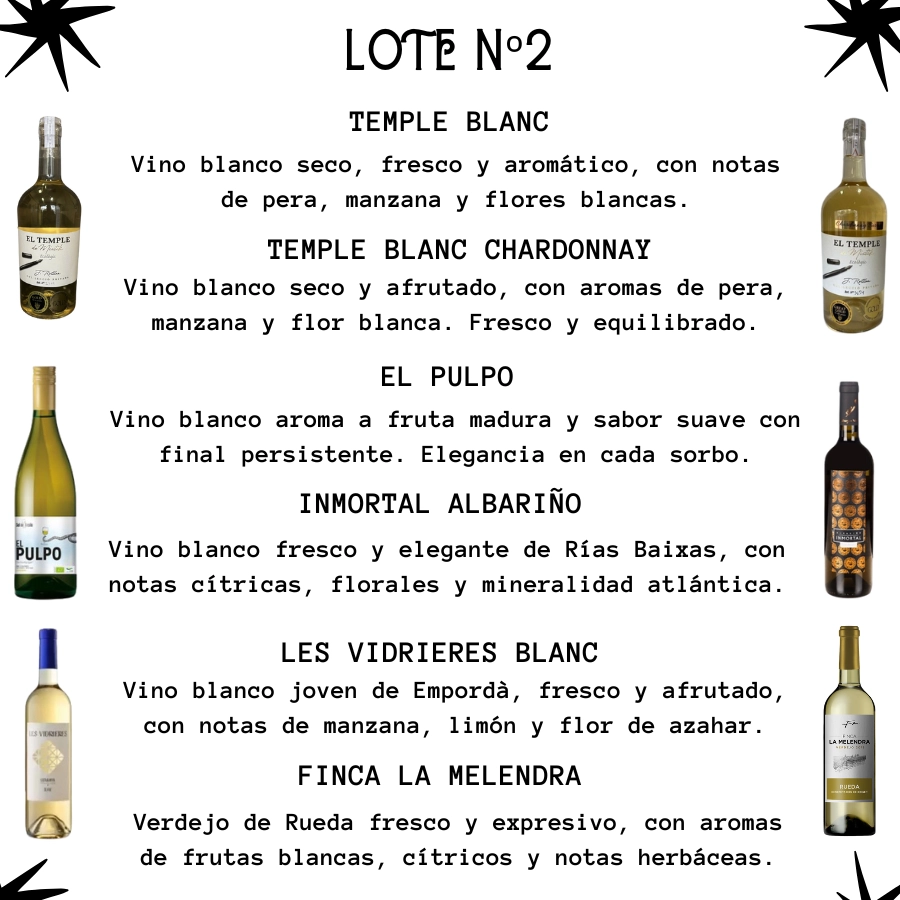 El lote Brisa Blanca reúne 6 vinos blancos vibrantes, ideales para amantes del vino que buscan frescura, expresividad y diversidad varietal. Desde el carácter atlántico del Albariño hasta la intensidad mediterránea de la Garnacha Blanca, este pack es perfecto para maridar comidas veraniegas, cenas ligeras o momentos de celebración.